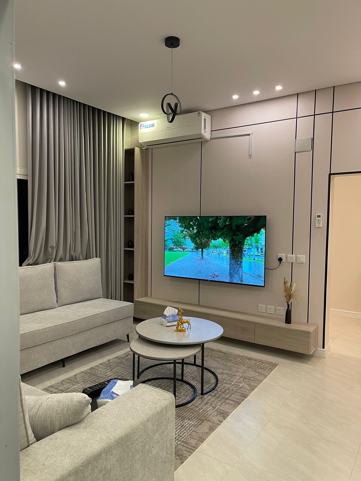 استمتع مع كامل العائلة في هذا المسكن الأنيق. الشقة باسلوب مودرن تتكون من غرفة نوم مجهزة بالكامل ، وصالة مجهزة بشاشة ٦٥ بوصة وركن قهوة بادواته . كنب للاسترخاء ، اريكة سرير . بوفية خدمة متوفر بجميع الخدمات . ادوات قهوة V60 . دخول ذكي وذاتي . غسول وشامبو وسليبرات ادوات نظافة . تتميز الشقة بالاسلوب الجميل والتصميم الهادئ والموقع المتميز بالقرب من المطار يبعد ٧ دقائق .