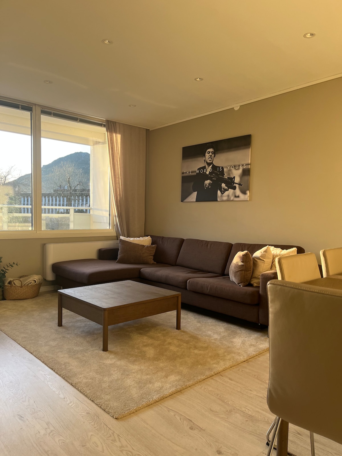 Alquilamos nuestro acogedor apartamento, en el sótano de nuestra casa familiar. El departamento tiene entrada privada. Se encuentra a 35 minutos del centro de Bergen (en coche). A 4 km del centro de Knarvik. El apartamento se ve moderno. Contiene cocina, sala de estar, dormitorio y baño. Bonitas caminatas, compras y atracciones turísticas cerca. A 8 minutos a pie del transporte público. La autopista está cerca y escucharás el tráfico cuando uses el área al aire libre. También hay niños que viven en la casa de arriba que pueden hacer ruido.☺️