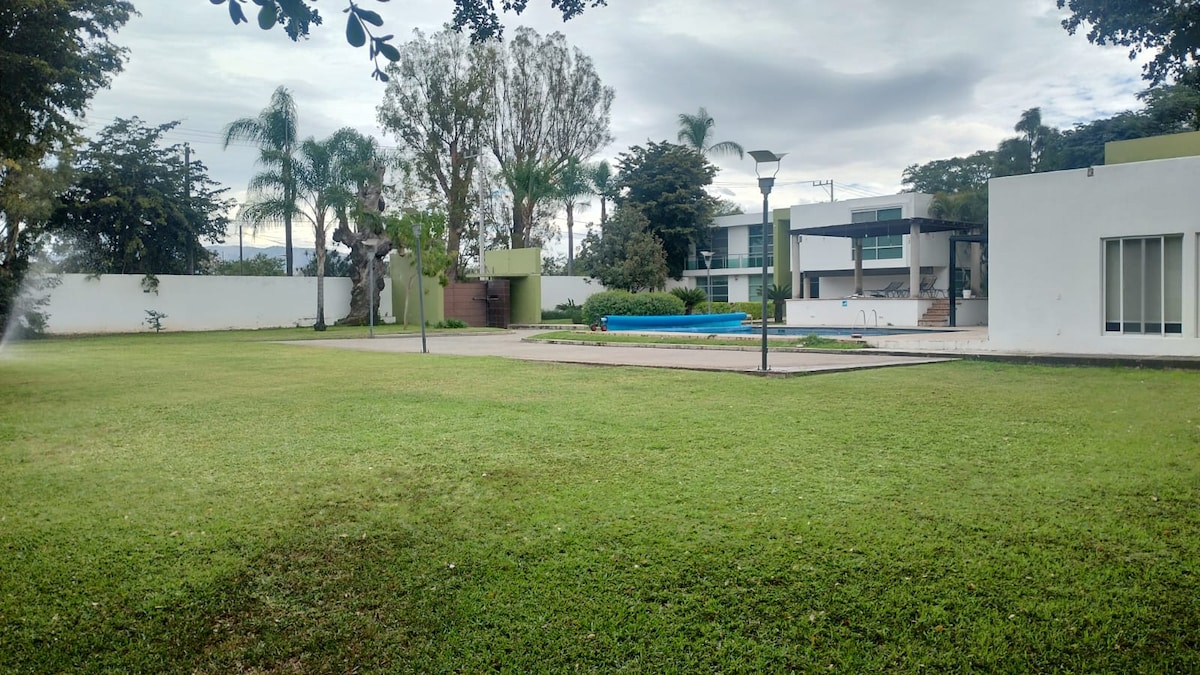 Espacio Familiar de campo con Alberca y Jardín
