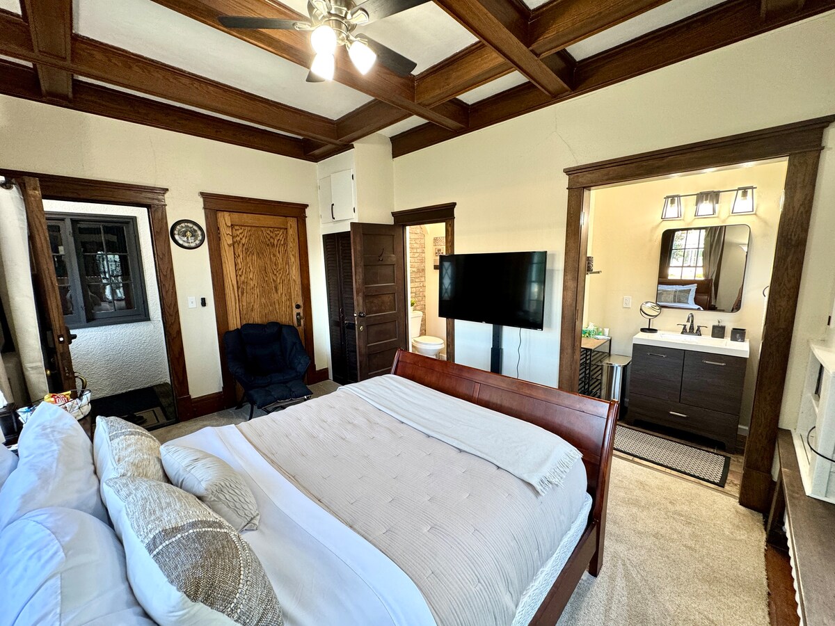 Disfruta de la elegancia de una época atemporal mientras te hospedas en este alojamiento del Registro Nacional de Lugares Históricos. Además, el antiguo hospital. Esta espaciosa suite en el 3er nivel del ático cuenta con dos habitaciones grandes (un dormitorio y una sala de estar). La abundancia de iluminación natural, el porche privado y la entrada privada (pasarás por la cocina del anfitrión) harán que tu estancia sea única. La suite se encuentra en el centro de la ciudad, a pocos pasos de bares y restaurantes fantásticos. Nota: Hay un gato en la casa.