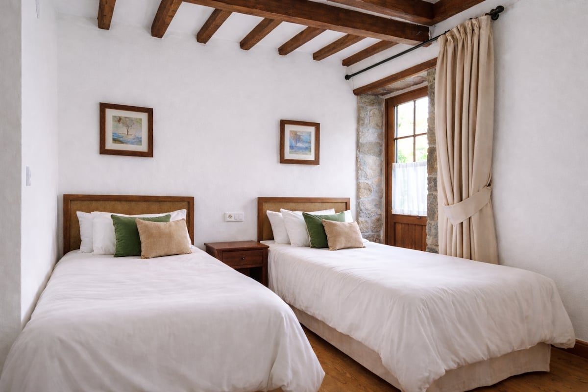 En Hotel Rural Valleoscuru, dispondréis de una habitación doble completamente equipada, con baño propio y con vistas al espectacular entorno natural que nos rodea. Disponemos wifi gratuito en todas las instalaciones del hotel y de aparcamiento exterior. Además, tendréis incluido el desayuno, donde utilizamos productos propios elaborados por nosotros como mermeladas, bizcochos... También podréis disfrutar de una visita gratuita tanto a nuestros manzanos como a nuestro llagar de sidra.