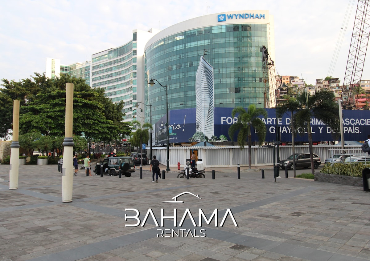 Fully furnished apartment with a spectacular view of the river. Our apartment is located in the most exclusive area of Guayaquil, on the banks of the River. Next to the Wyndham hotel, restaurant bars and much more. Super Fast Wifi, Netflix, TVs in all rooms, security and concierge 24/7.