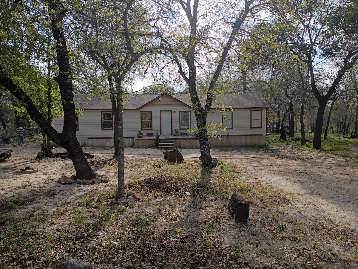 Aislado, tranquilo, 10,5 acres donde puedes disfrutar del sonido y la vista de las aves y otros animales salvajes desde el porche delantero. Si quieres alejarte de la ciudad, aquí es donde quieres estar a 11 minutos de Poteet y Jourdanton y a 18 minutos de Pleasanton. A 30 minutos de San Antonio. ¡Se admiten todo tipo de mascotas al aire libre!