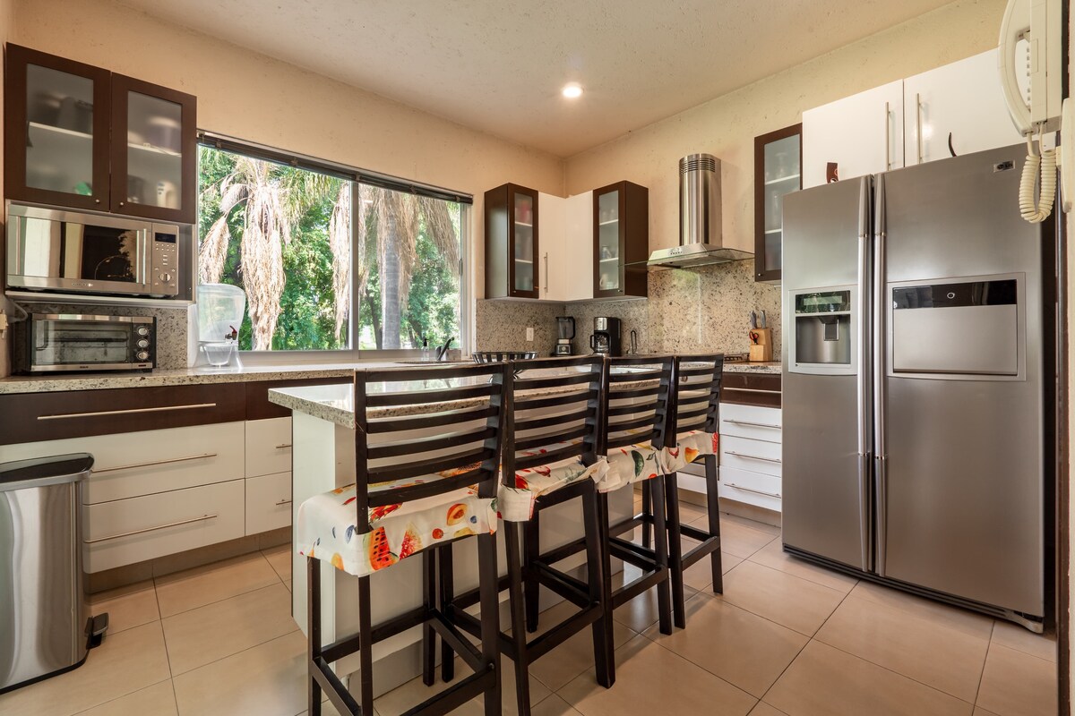 Amplia Casa Moderna super confortable y con amplio jardín solo para los huéspedes donde podrán disfrutar de un ambiente rodeado de naturaleza y sobre todo de gran privacidad , ideal para disfrutar de tu pareja y/o tu familia en un lugar super tranquilo. Estacionamiento para 15 autos, ideal para familia completa, muy cerca del Centro y de los principales Lugares de Eventos.