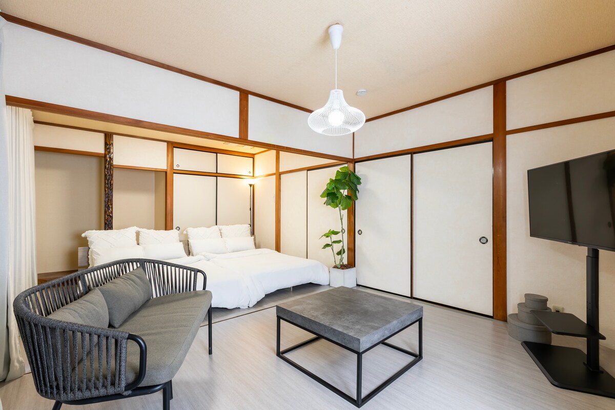 ¡Te damos la bienvenida a "Apricot House"! Esta casa en Minami-ku, Nagoya, tiene capacidad para 10 huéspedes con 3 plazas de estacionamiento gratuitas. A solo 5 minutos a pie de la estación, es fácil acceder a las atracciones. En las inmediaciones encontrarás tiendas de conveniencia y supermercados. El interior, con detalles en madera, crea un ambiente acogedor. Cada habitación refleja los temas japoneses y de Nagoya. LegoLAND, el castillo de Nagoya y el santuario de Atsuta están cerca. Las estaciones de esquí están a 2 horas. Relájate y disfrutá tu espacio privado. ¡Perfecto para familias y grupos!