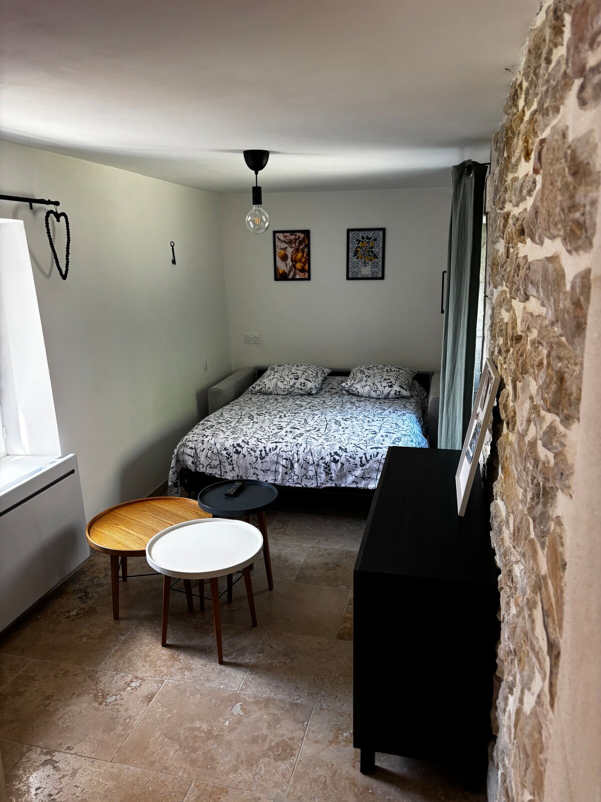Our apartment is in the heart of Uzes, close to the shops and restaurants. You'll enjoy it for its location, the lively and charming atmosphere of the place, the calm at all times, ample volume and brightness. Perfect for couples, solo travelers and families (with baby). It has a large living room with an open kitchen with a bar, a large bedroom with a stone fireplace, a bath with shower, toilet in the bedroom area and a south orientated balcony.