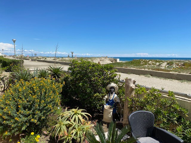 En primera línea, la playa de arena fina y el mar Mediterráneo a tus pies. Un piso de 100 m2 totalmente equipado y con aire acondicionado con una plaza de aparcamiento privado (con posibilidad de aparcar dos coches). Mélanie te dará la bienvenida y te guiará. Una cocina ultramoderna con terraza, solárium y vistas de 360°. Entre el mar y el Clape, tómate tu tiempo para descansar y disfrutar de la belleza que te ofrece la naturaleza.