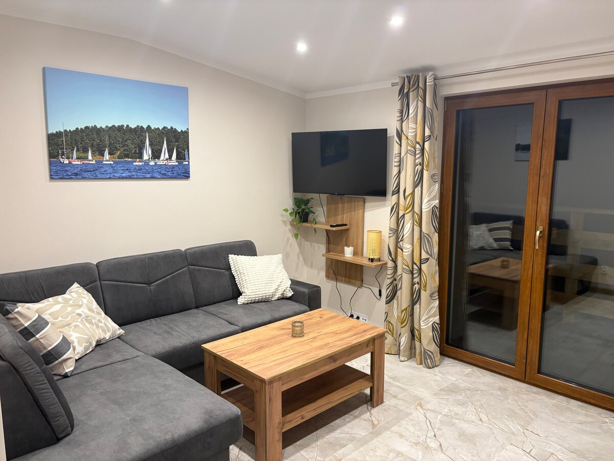 Regálese un descanso y relájese. Elegante apartamento en una zona tranquila a 1,5 km del centro de la ciudad con un amplio balcón y plaza de aparcamiento gratuita. Registro de entrada autónomo. Situado en el primer piso de un moderno edificio de tres plantas con ascensor. Equipado con nevera, pequeña cafetera, lavadora, secadora, TV plana, wifi, cama muy cómoda. Un excelente punto de partida para explorar la ciudad y sus alrededores. A 1 km de PIASKOWNICA, un lugar para los amantes de la conducción todoterreno. Espacio para guardar varias bicicletas.