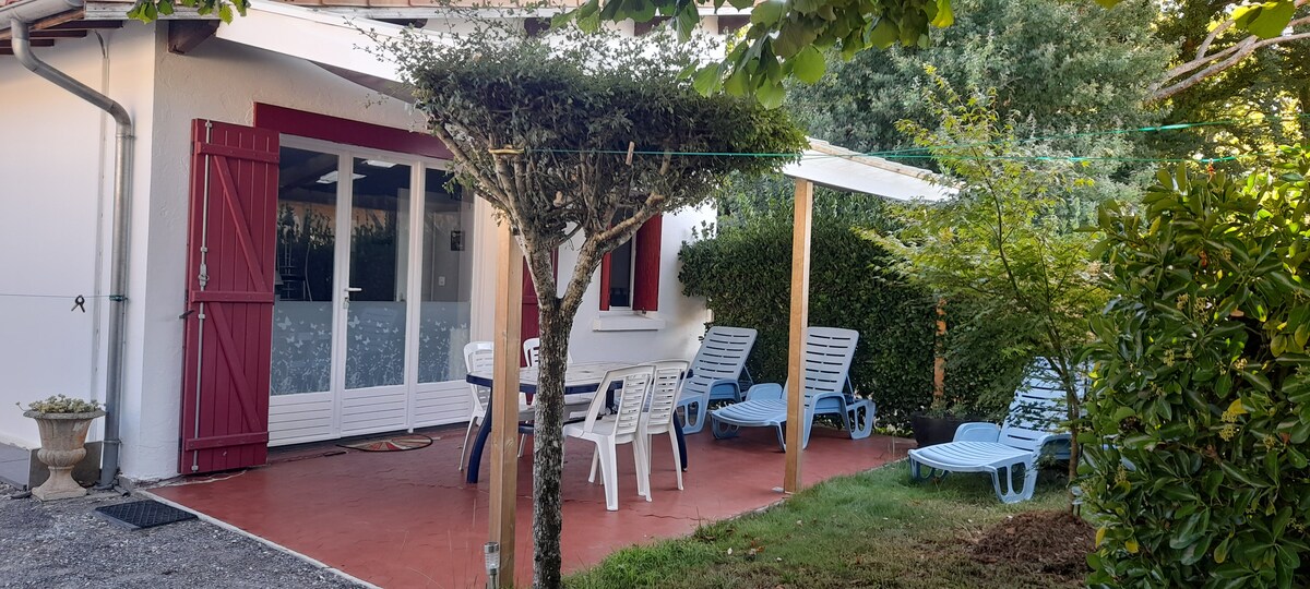 Casa independiente tranquila en el borde del bosque, cerca de las playas de Mimizan (12 km);golf, lagos y carriles bici (La Vélodyssée pasa a 2 km ).Combina la modernidad y el encanto de la tradicional casa rural de ladrillo de Landas, es perfecta para parejas o personas que viajan solas. Habitación con cama doble 160x200. Sala de cocina equipada con nevera, placas de inducción, horno microondas combinado con grill, cafetera Nespresso, hervidor de agua, sofá TV wifi. Ducha italiana y aseo separado.