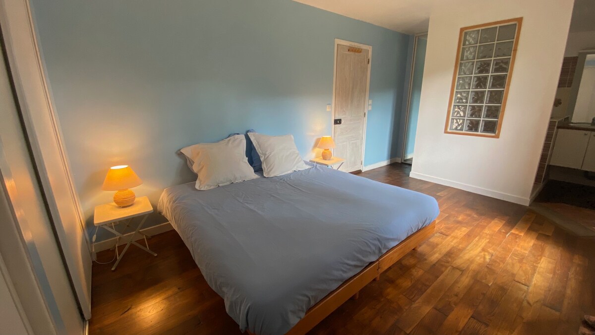 Venez profitez du calme qu'offre cette maison individuelle composée d’une cuisine équipée (frigo, micro-onde, cuisinière, cafetière SENSEO, grille pain, bouilloire, machine à laver..) ouverte sur un salon équipé d’une grande télévision, de la WI-FI dernière génération grâce à la fibre et d’un canapé clic clac, d’une salle de bain avec baignoire, d’un WC séparé, d’une chambre avec un lit double , d'une autre avec deux lits simples, d'une troisième chambre avec un lit superposé et un lit simple.