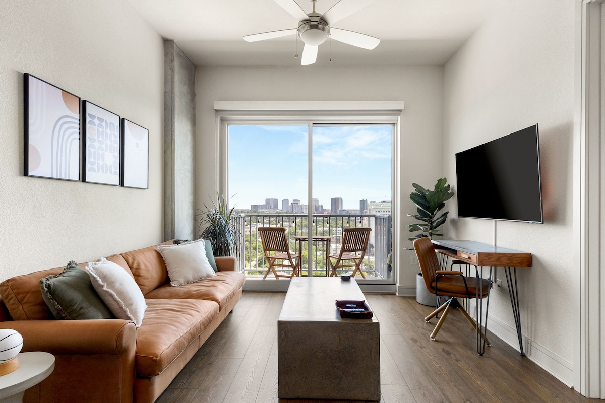 ¡Te damos la bienvenida a tu hogar perfecto lejos de casa! Ubicado en el piso 19 del lujoso Seven High-Rise, este moderno alojamiento de 1 dormitorio y 1 baño ofrece impresionantes vistas del centro de Austin y el horizonte circundante. Tanto si estás aquí por negocios como por placer, disfrutarás de la mezcla ideal de comodidad y estilo en esta unidad bien equipada. El apartamento cuenta con un plano de planta abierto con una cocina totalmente equipada, una acogedora sala de estar y un balcón privado donde puedes relajarte y disfrutar de las impresionantes vistas.