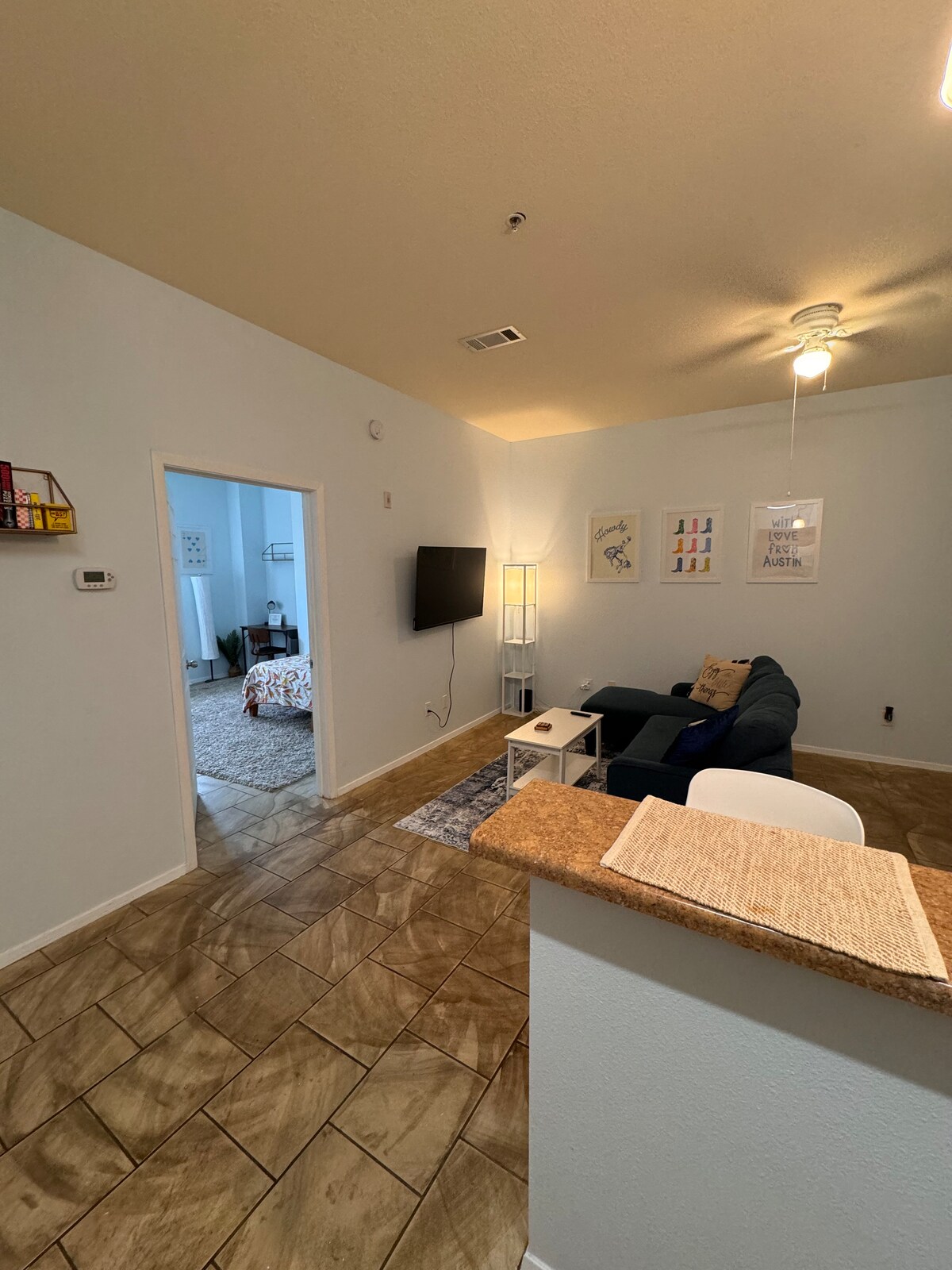 ¡Bienvenido a nuestro acogedor apartamento de 1 cama y 1 baño con temática de Texas! Con una decoración vintage de Texas y un vibrante orgullo de Texas, este espacio ofrece comodidad y encanto. Disfruta de una relajante sala de estar con un televisor de 80 pulgadas, una cocina totalmente equipada y una lujosa cama tamaño KING para una estancia tranquila. El moderno baño tiene todos los elementos esenciales y el apartamento está a pocos minutos de las atracciones locales y del centro de la ciudad. Perfecta para una escapada de fin de semana o una estancia prolongada, ¡es la base de operaciones ideal para explorar el bebé de Austin, Texas!