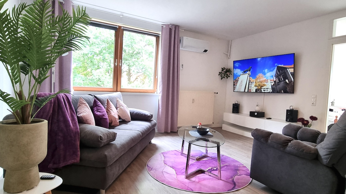 ¡Te damos la bienvenida al centro de Wolfsburg! Nuestro departamento de 3 habitaciones recientemente renovado cuenta con todo lo que necesitas para una estancia encantadora: → Cama tamaño king. Sofá → de primavera para el quinto y sexto huésped Televisión → inteligente de 55 pulgadas → Silla de masaje → 1000 Mbit/s LAN+WLAN cable → de carga 3 en 1 → CAFÉ NESPRESSO → diferentes tipos de té → Cocina pequeña con lavavajillas, nevera y congelador, estufa, horno → Cuarto de baño con lavadora-secadora y secador depelo → directamente en la zona peatonal de Wolfsburg Espacio de estacionamiento→ propio. Llegada → las 24 horas