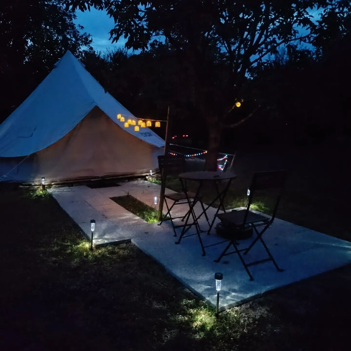 ¡Una tienda de campaña muy especial y cómoda, para una estancia muy agradable! Ven a nosotros para pasar un tiempo tranquilo y romántico. Glamping La Fraventure se encuentra a solo 7 minutos del lago de Sidiailles. Natación, escalada de árboles, tirolinas gigantes, botes a pedales, canotaje, senderismo, escalada... Incluye: inodoro seco privado, ducha ecológica privada, wifi, cocina compartida y baño compartido, cama elástica, piscina. Bajo petición: desayuno a 10 €/persona (min 2 pers), cuna, matras extra pequeñas, pasta, a veces barbacoa