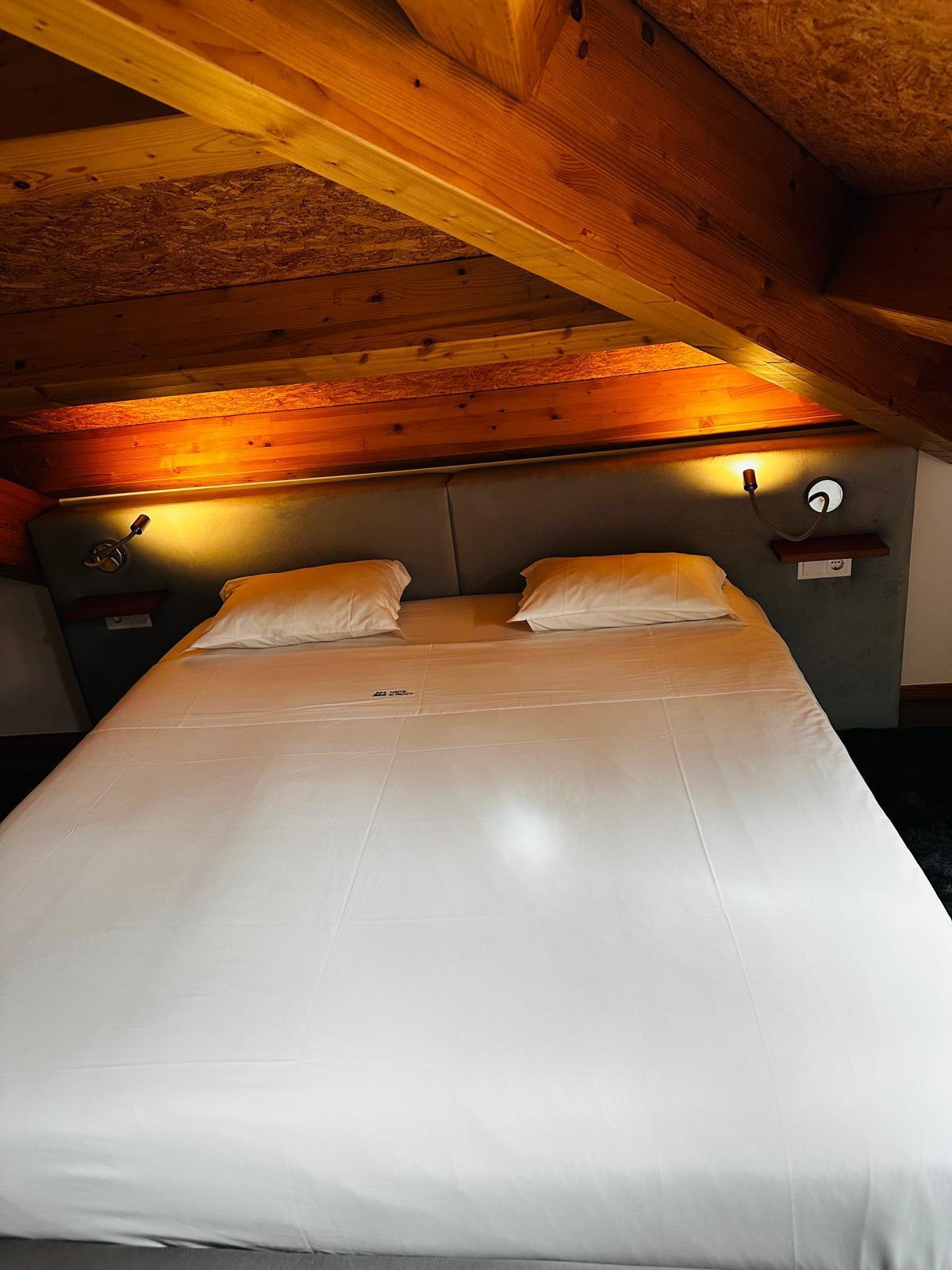 La habitación doble con baño privado es ideal para hasta tres personas. El espacio tiene 37 m² y tiene una cama doble grande y un sofá cama, lo que proporciona flexibilidad para diferentes tipos de huéspedes. Esta habitación incluye baño privado con ducha, lo que garantiza más privacidad, además de que tiene secador de pelo y artículos básicos. También cuenta con una cocina equipada, con nevera, TV y aire acondicionado, ideal para la tranquilidad.
