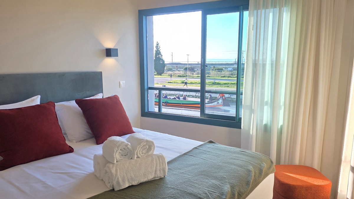 Con un balcón frente a la Ría de Aveiro y acceso inmediato al océano Atlántico, este apartamento consta de dos cómodos dormitorios y un sofá cama, con capacidad para alojar hasta 6 huéspedes. El salón, equipado con una chimenea, ofrece un ambiente acogedor y relajante. El alojamiento también incluye un amplio garaje. Disfruta del ambiente sereno y de la proximidad de las playas y la Ria para una estancia inolvidable en Aveiro.