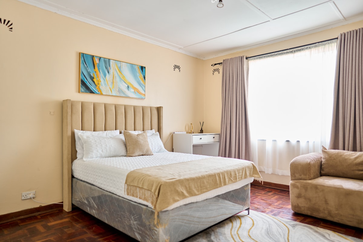 Bienvenido a tu elegante apartamento de 1 dormitorio en Harare City en las avenidas, cerca de CBD, embajadas, tiendas y restaurantes. A poca distancia de Avondale, Belgravia, Belvedere, Milton Park, Alex Park, Newlands, hospitales, clínicas y laboratorios. Disfruta de wifi ilimitado, DSTV Premium y Netflix, con energía de respaldo para iluminación, wifi, TV y carga. 🌸 Perfecto para estadías cortas y largas, con un 5 % de descuento semanal (más de 7 noches) y un 15 % de descuento mensual (más de 28 noches).