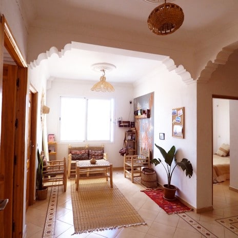 Te damos la bienvenida a tu experiencia de surf en Tamraght Esto es mucho más que un alojamiento: es una experiencia completa de estilo de vida surfista vinculada a nuestro campamento de surf. Te alojarás en un departamento privado y cómodo de 2 habitaciones, perfecto para relajarte después de un día en el mar, mientras disfrutas de un ambiente social y agradable en el campamento de surf.