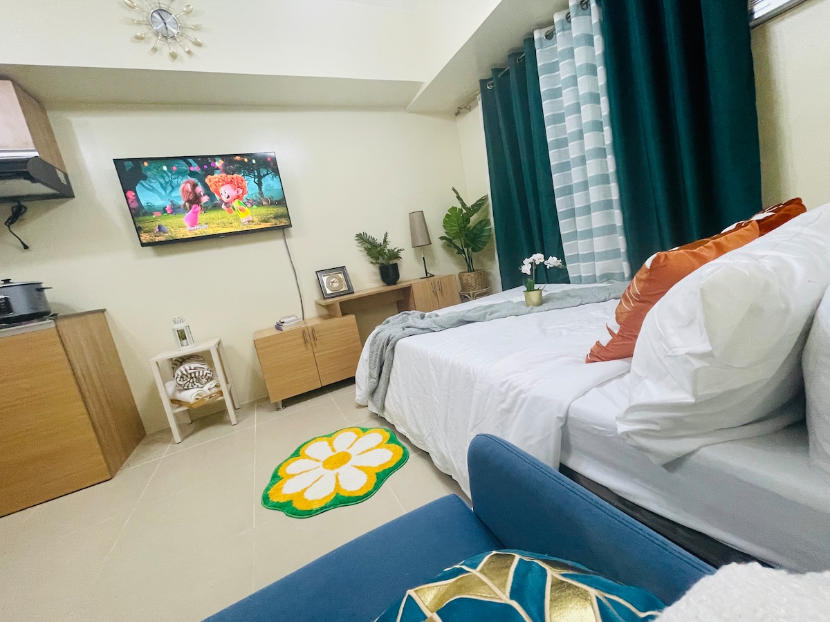 ¡Te damos la bienvenida a tu hogar lejos de casa en Tagaytay! Relájate en un elegante estudio ejecutivo con un balcón privado con vistas al sereno paisaje de Cavite. Perfecto para parejas o familias pequeñas, este tranquilo refugio ofrece: Wi-Fi de alta velocidad (hasta 300 Mbps), Netflix, cocina totalmente equipada y espacio de comedor y mucho más. Ubicado en Serin East, estás a solo 15 pasos del centro comercial y rodeado de tiendas, cafés y restaurantes locales, todo lo que necesitas a tu alcance.