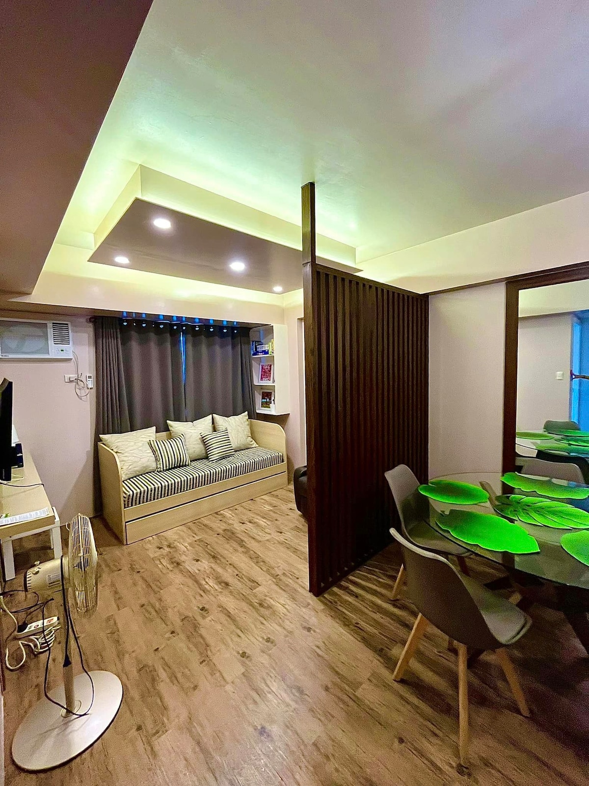 Un espacio encantador para desconectar y relajarse después de un ajetreado día de trabajo. Disfruta de la comodidad y tranquilidad de este apartamento contemporáneo de 1 dormitorio. El apartamento tiene una combinación de colores monocromática con partición de vidrio templado y superficies de madera. Disfruta de Netflix en un cómodo sofá o pasa un rato en el balcón para disfrutar de la brisa fresca y el clima acogedor de Tagaytay. También puedes pasar un tiempo admirando las impresionantes vistas panorámicas del lago Taal en el Sky Lounge al que pueden acceder los huéspedes.