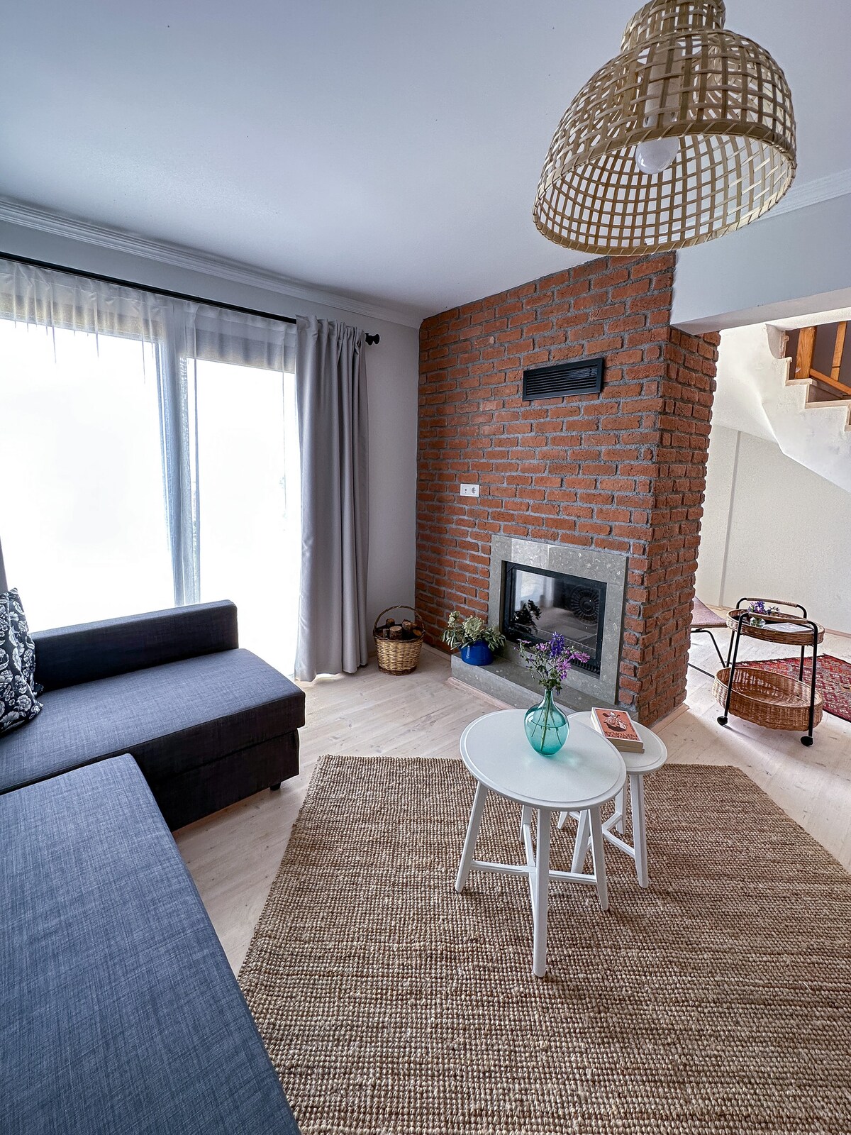 Casa de diseño bohemio con calefacción por suelo radiante y chimenea
