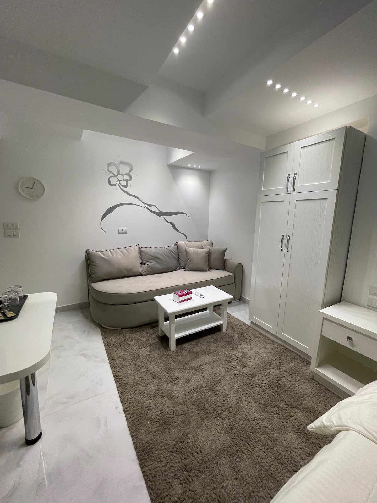 🏡 Elegante apartamento en el centro de la ciudad, ¡a solo unos pasos del metro más nuevo de El Cairo! Lo que te encantará: ✔ Ubicación privilegiada: a solo un minuto del aeropuerto, cafés y centros comerciales. ✔ Acogedor y bien diseñado: dormitorio con televisor inteligente y wifi rápido. Cama ✔ cómoda: colchón de alta calidad y sábanas de lujo para un sueño reparador. Extras ✔ atentos: ¡toallas limpias, artículos de aseo personal y una canasta de aperitivos de bienvenida! Nota: Ten en cuenta que no se permiten grupos mixtos ni parejas en el departamento.