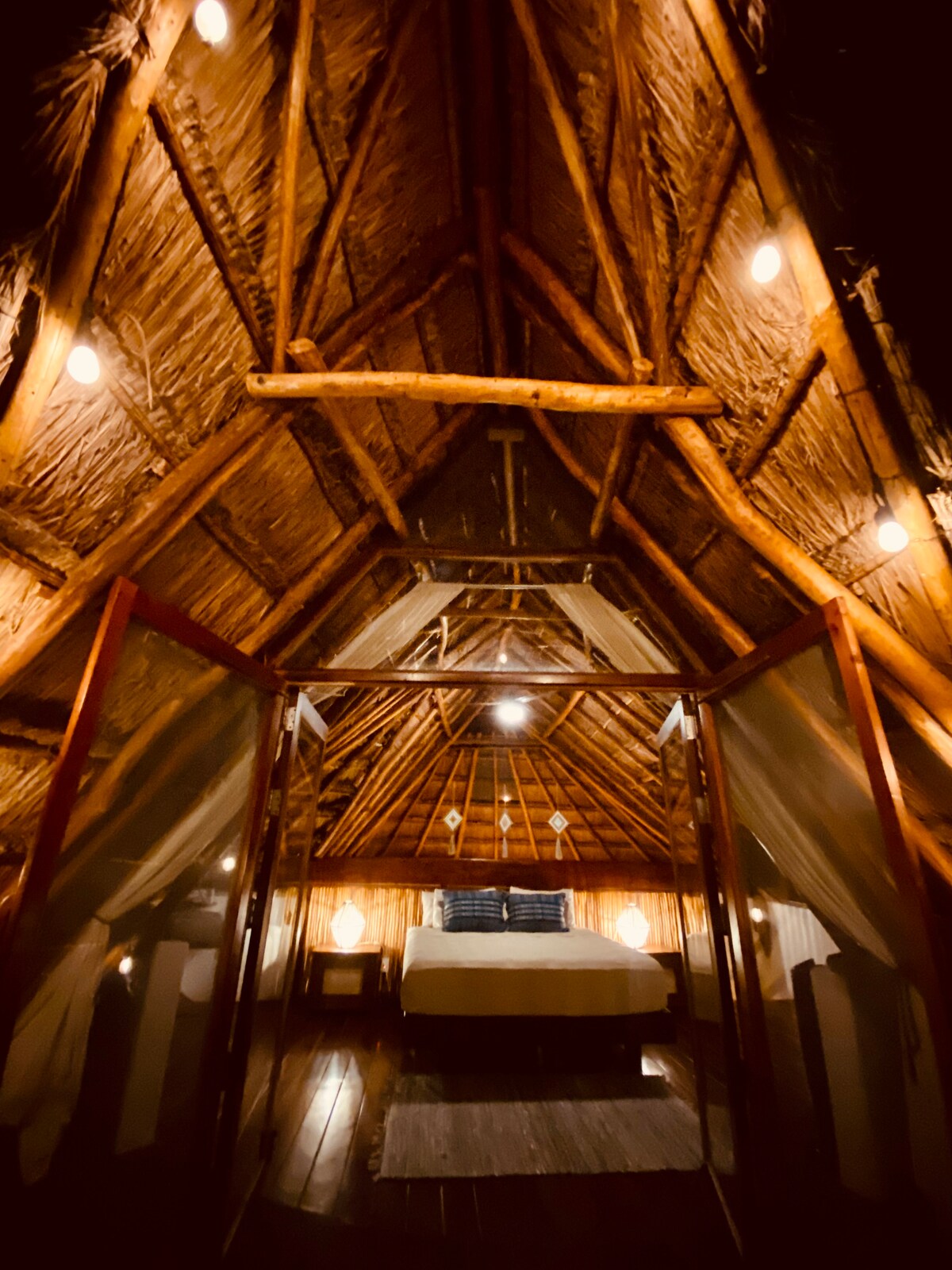 Vive una experiencia única en la cabaña Iguana, diseñada en perfecta armonía con la naturaleza. Construida alrededor de dos majestuosos árboles de Jabin que forman parte de su estructura, esta cabaña te permitirá soñar entre la selva y la laguna en un ambiente acogedor y artístico. Observa aves desde la comodidad de tu hermosa terraza con vista a la laguna o relájate en el muelle con palapa sobre la laguna, rodeado de un hermoso jardín tropical.
