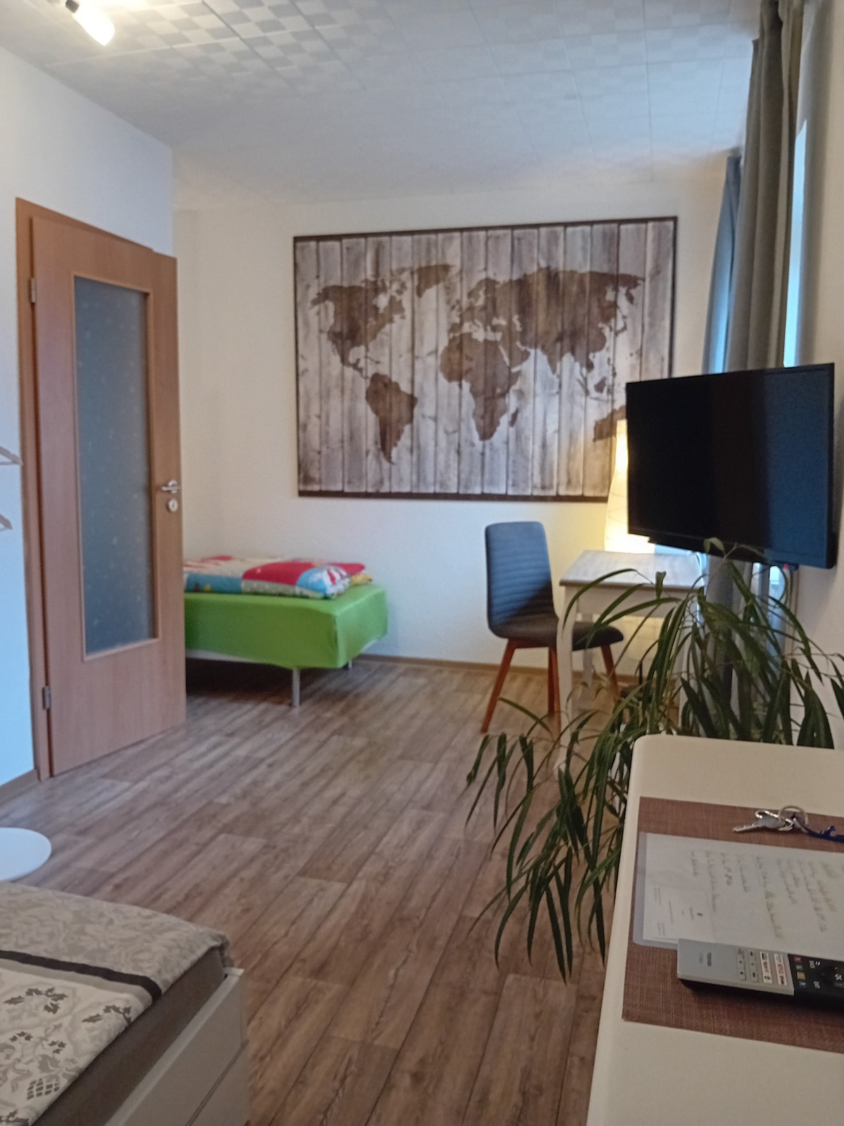 Luminoso apartamento independiente renovado en zona verde. El apartamento ofrece una sala de estar, cocina y baño, así como una terraza privada con vistas al jardín o al paisaje. Delante de la entrada hay un aparcamiento gratuito. El centro está cerca, las posibilidades de senderismo casi en la misma puerta.