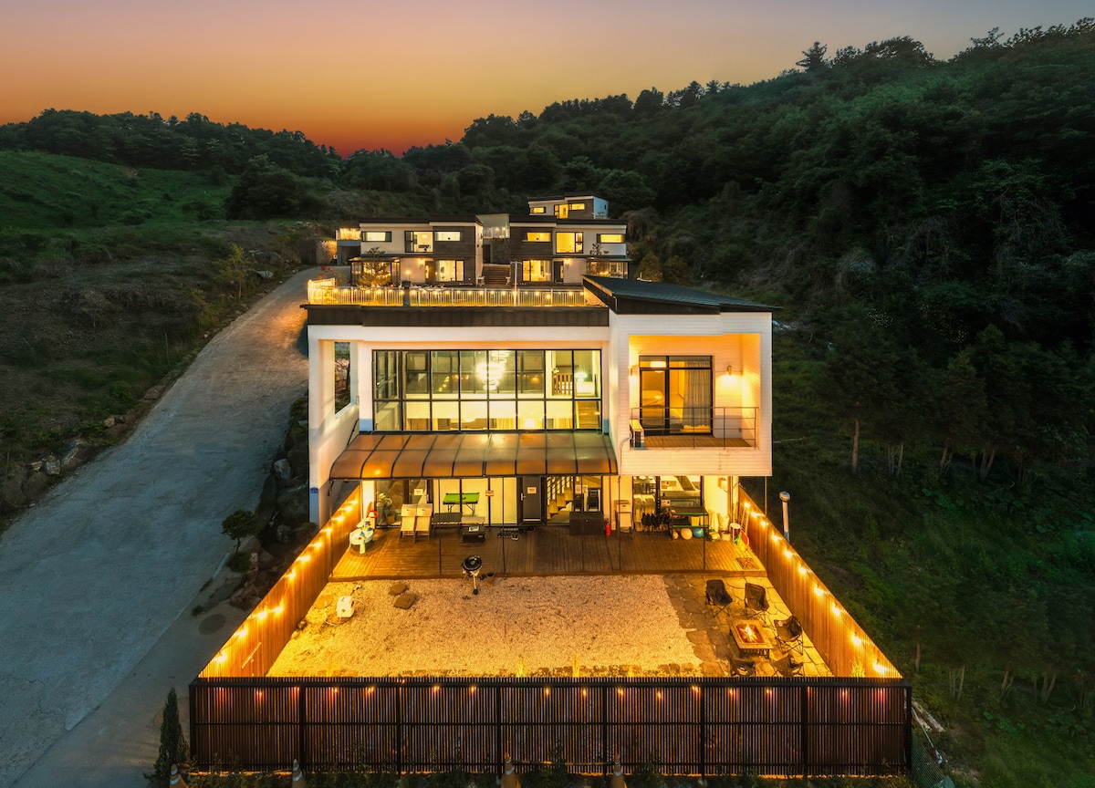 [홍정명지석] 불멍+야외바베큐가 있는 프라이빗 가족별장 방4개 욕실2개 (6~8인숙박)