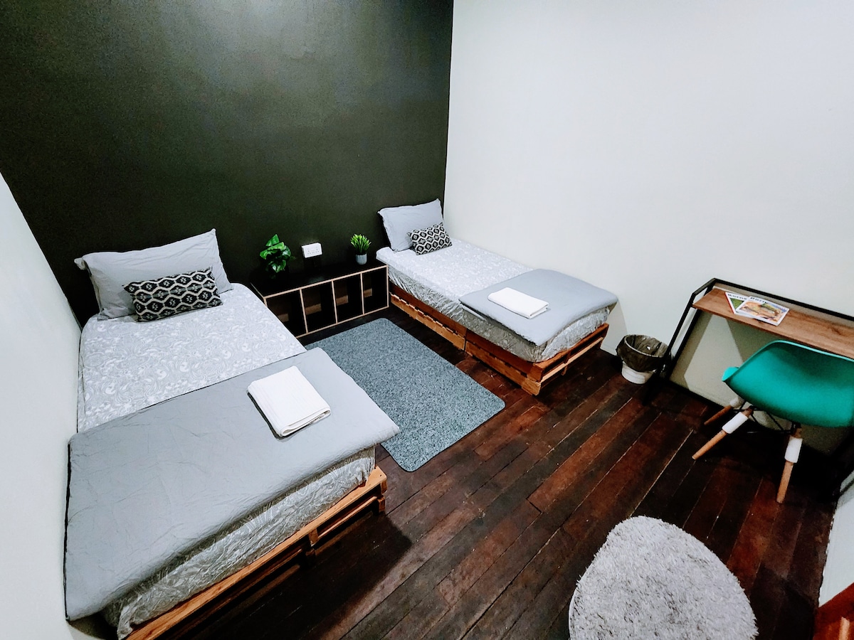 La tarifa es para una habitación de dos personas,no para todo el lugar. Concepto moderno y minimalista para la comodidad y la estancia tranquila en medio de la parte antigua de la zona histórica de Kuching, los museos están a poca distancia a pie. La costa está a solo 5 minutos de la calle. El wifi gratuito y el desayuno son inclusivos. Ofrecemos servicio de lavandería y secado. La cocina es de uso gratuito. Habitación común con TV y algunos DVD, mini biblioteca con invitación de intercambio de libros. Todas las habitaciones son duchas y aseos comunes. Todo el aire acondicionado.