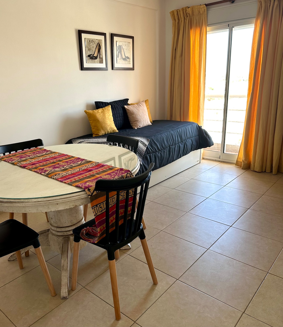 Un espacio cómodo y preparado con dedicación para que te sientas como en casa. Barrio seguro, con comercios cercanos. Podés llegar caminando al centro, restaurantes, cafés … 2 dormit amplios y 4 sommiers. Placares. Cocina separada. Lavarropas y Tender. Desayunador. Hermoso estar y comedor con Wi-Fi de alta velocidad y TV con Chromecast , A/A. Balcón a la calle. No tenemos cochera privada. Edificio muy tranquilo, terraza, patio muy amplio, árboles, fogones Snack de Bienvenida