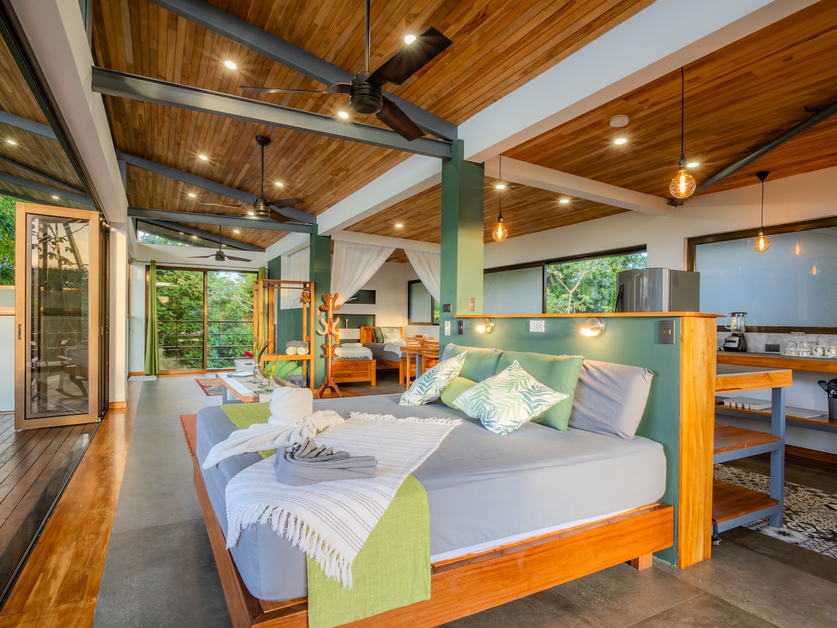 Relájate con familiares o amigos en esta casa de dos dormitorios tranquila, limpia y completamente nueva, ¡ubicada en uno de los lugares más biodiversos del planeta! Tu estancia incluye el uso de todos los juguetes de deportes acuáticos, piscina y parque infantil para niños. La playa es tranquila y cálida, con muchos restaurantes y bares de playa a poca distancia a pie. Si tienes hijos, también ofrecemos el Osa Jungle Camp al que los niños pueden asistir por una tarifa mientras disfrutas de tus vacaciones. Muchos animales exóticos y vida marina justo afuera de tu puerta.