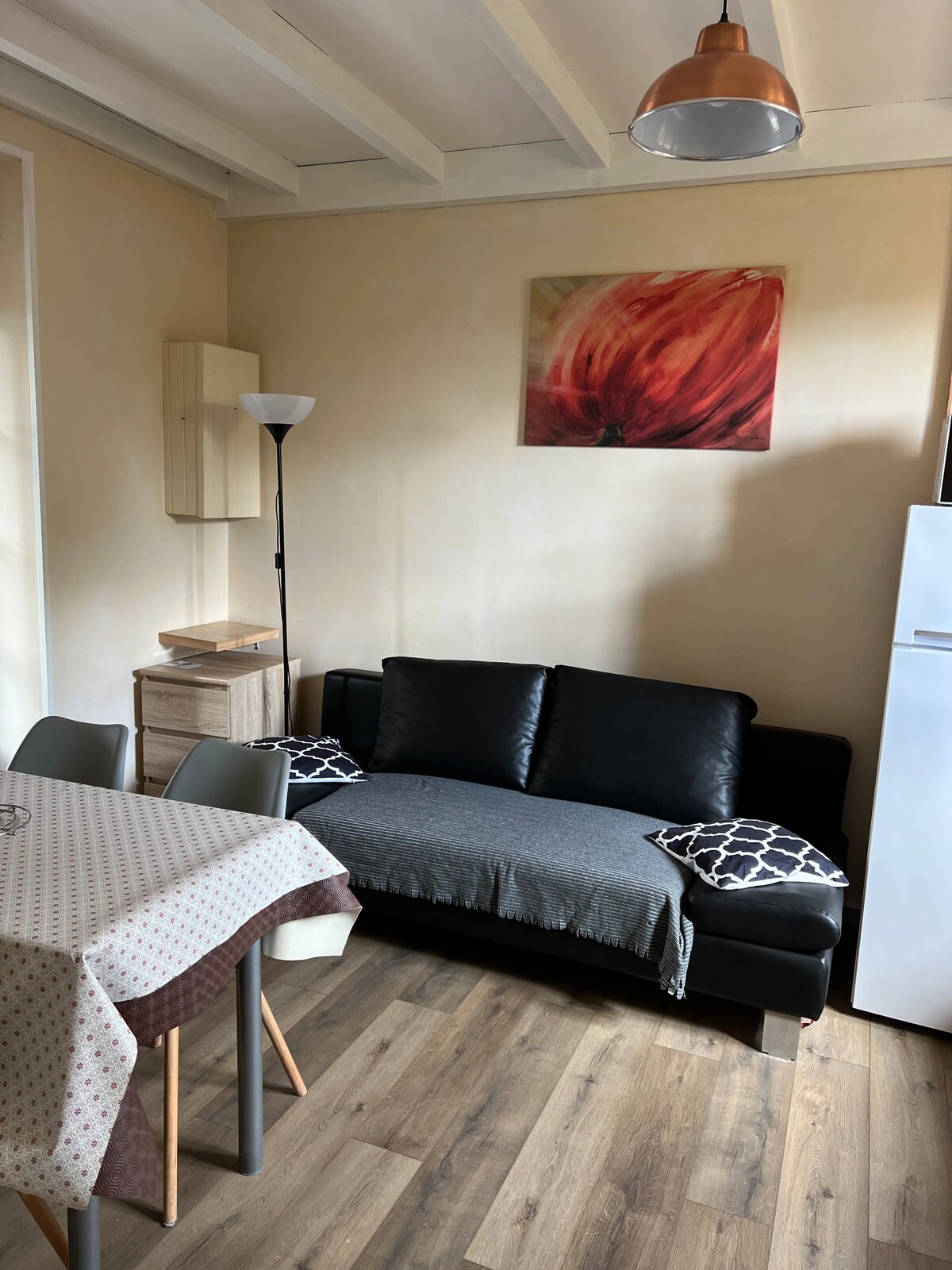 Apartamento moderno y luminoso, con aire acondicionado, perfecto para una estancia cómoda solo o en pareja. La cocina está totalmente equipada (horno, vitrocerámica, nevera, lavadora) y abierta a una acogedora sala de estar con sofá y zona de comedor. Decoración elegante y depurada con toques vegetales y madera. Habitación tranquila, baño con ducha. Situado cerca de los servicios, este apartamento ofrece todas las comodidades necesarias para una estancia relajante.