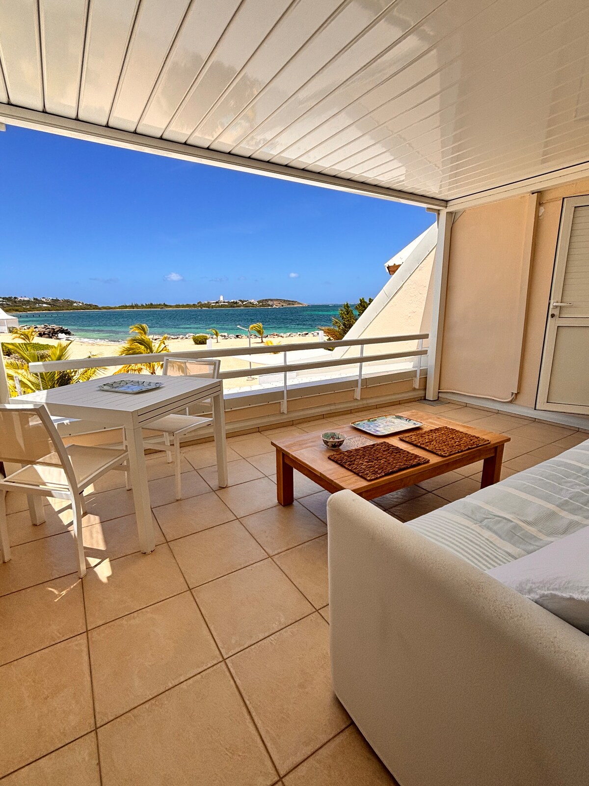 Despierta con el infinito azul del Caribe desde tu terraza privada con impresionantes vistas al mar. Este apartamento frente a la playa en Baie Nettle combina comodidad, elegancia y serenidad. Acceso directo a la playa, 4 piscinas, 2 canchas de tenis, wifi, aire acondicionado y cocina totalmente equipada. Idealmente ubicado entre los lados francés y holandés, cerca de las mejores playas y restaurantes. Una escapada perfecta para parejas, trabajadores remotos o cualquier persona que busque paz.