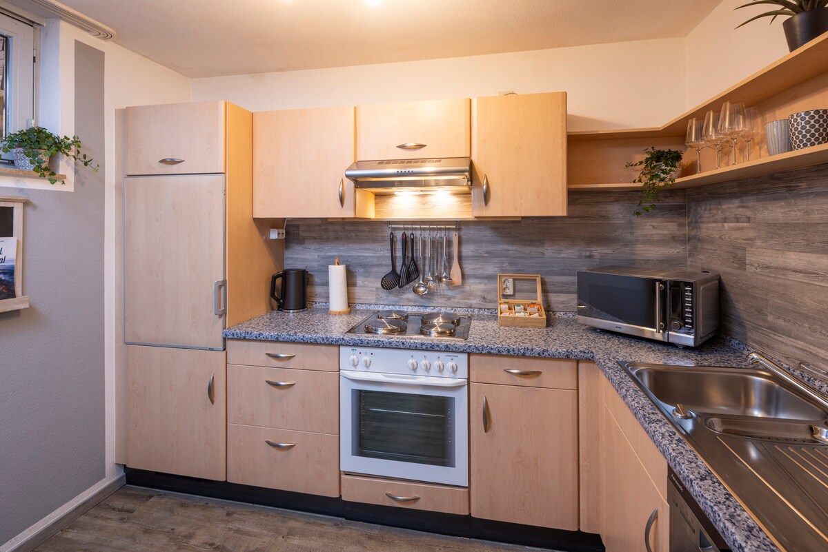 Hermoso departamento vacacional ubicado en el pequeño pueblo de Trichtingen, entre el Jura Suabio y la Selva Negra. Vida tranquila en tres habitaciones, cocina y baño. - Sala/comedor con TV. - Cocina totalmente equipada con lavavajillas - Baño con ducha y bañera. - Dormitorio con cama matrimonial grande y sofá cama adicional - dormitorio con cama grande grande a 1,40 m. - Trastero - Patio