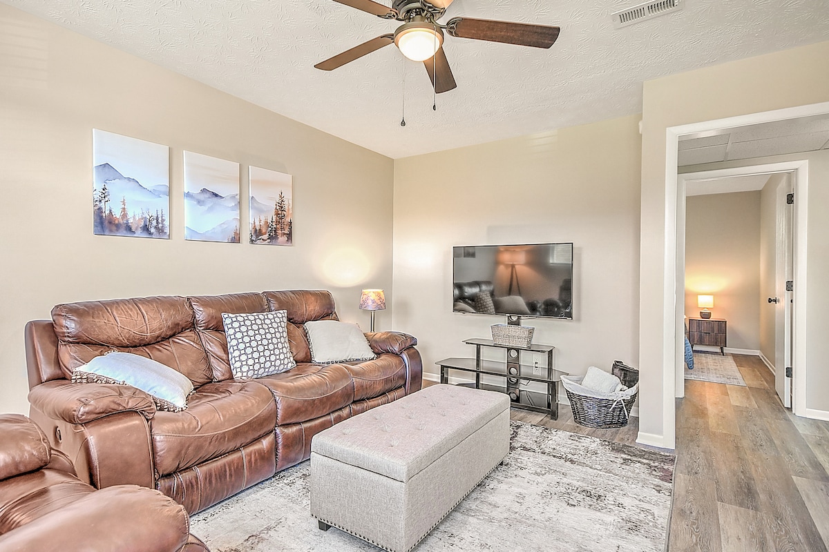 Encantador alquiler ejecutivo amueblado 1BR/1BA en Cedarwood Apartments – Greeneville, TN Este alquiler ejecutivo bellamente amueblado a las afueras de los límites de la ciudad de Greeneville ofrece una sala de estar acogedora pero moderna con muebles elegantes, una cocina totalmente equipada con todo lo esencial y un cómodo dormitorio con una cama tamaño king con lujosa ropa de cama. Disfruta de la comodidad de Internet WiFi de fibra de alta velocidad, un televisor inteligente de 50 pulgadas para el entretenimiento y lavandería compartida del mismo nivel.