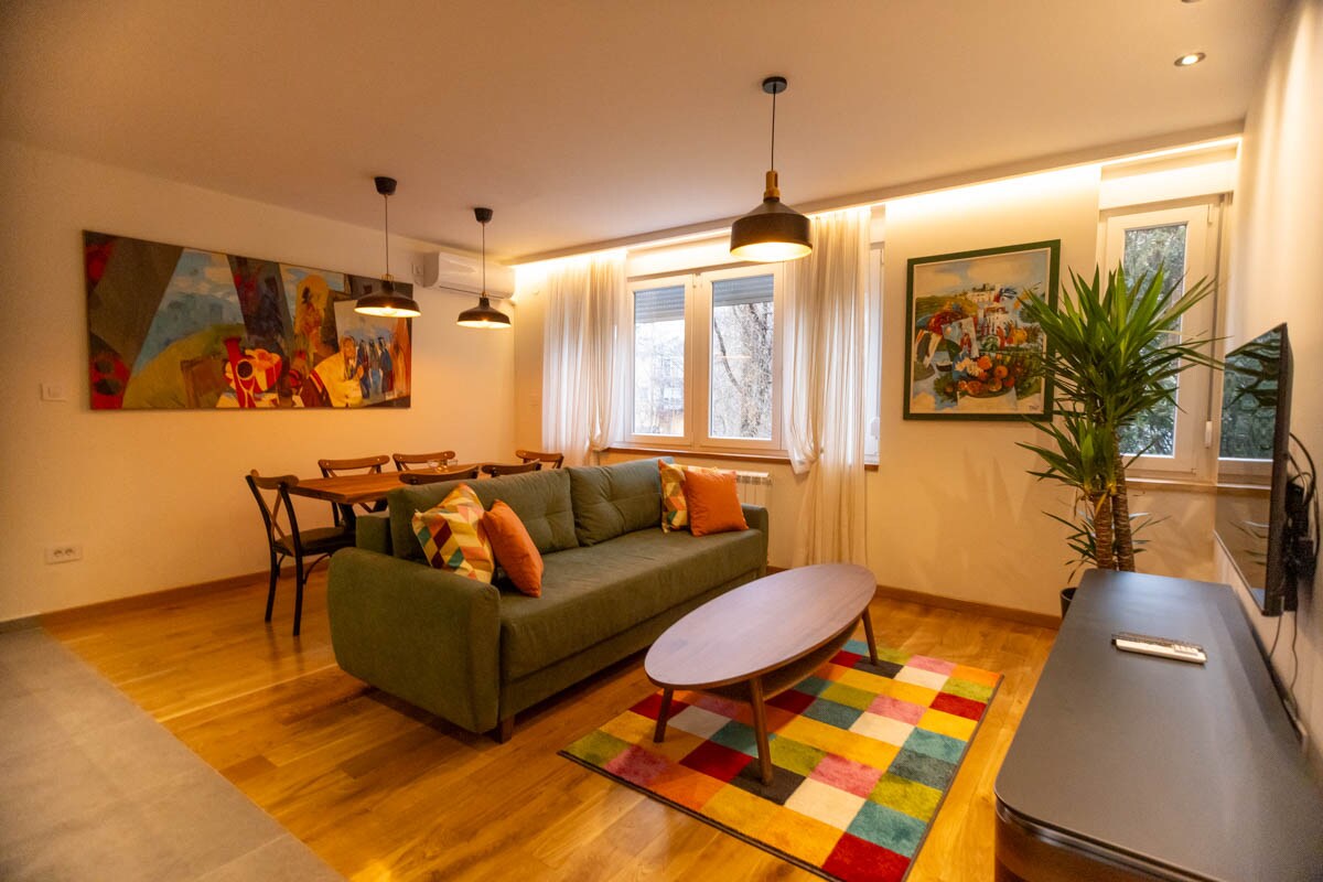 Apartamento elegante y acogedor en el corazón de Skadarska str. (Barrio bohemio de Skadarlija) 48 m², comedor-cocina, sala de estar y dormitorio separado), ideal para explorar el casco antiguo de Belgrado. Nuestro apartamento está totalmente equipado para sus estancias cortas y largas tiempo que se quedan sólo por placer o por negocios también. Alójate en el centro del casco antiguo y siente el mejor ambiente. ¡Te enamorarás del vecindario!