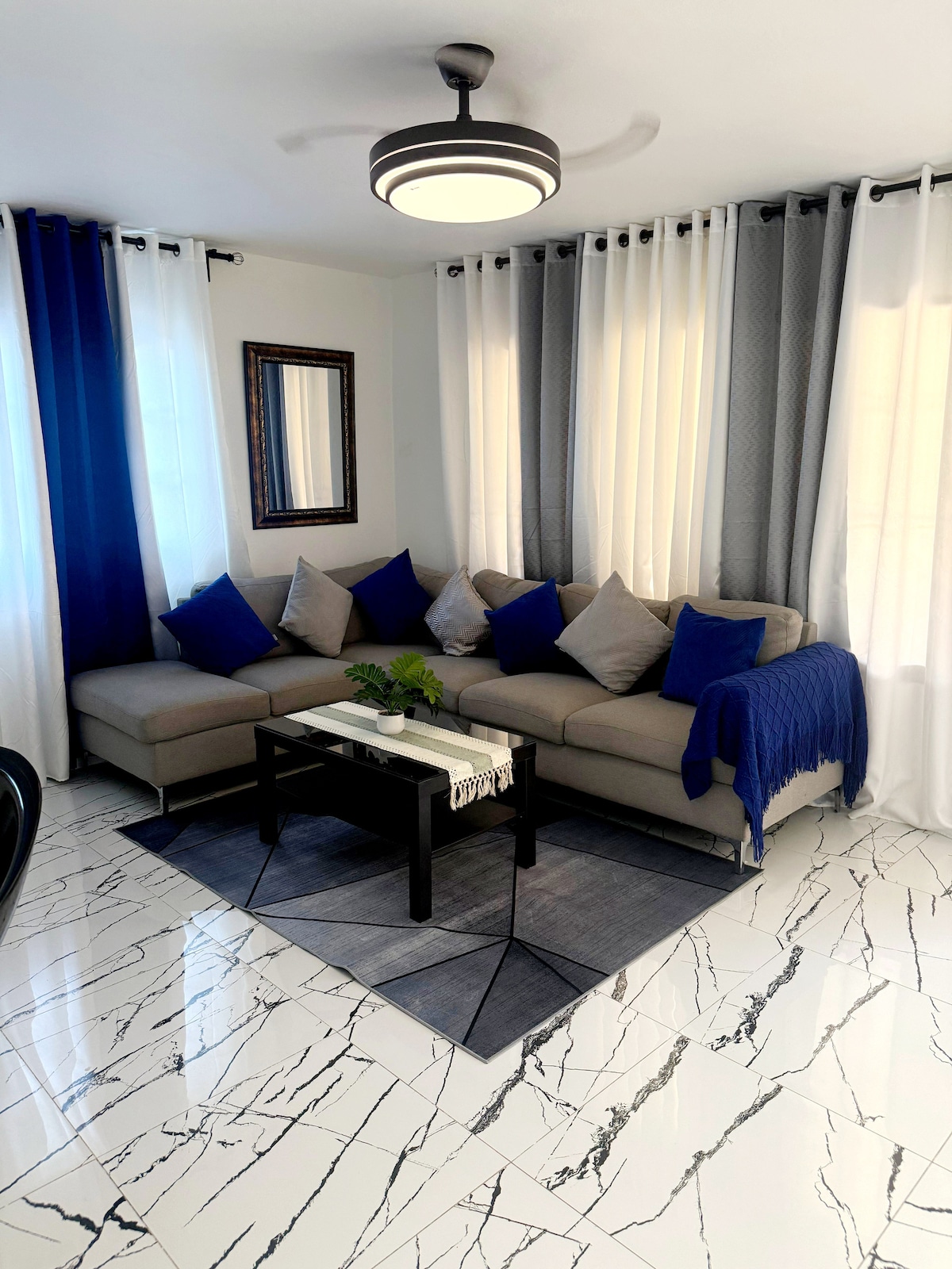Diviértete con toda la familia en este alojamiento amueblado con estilo. Con sus dos amplias habitaciones cada una con aires acondicionados. SmartTV con todos las app de streaming (Netflix, HBO,...) incluidas, luz y internet 24/7, con parqueo incluido. Cerca de los supermercados y de la zonas céntricas de la ciudad.
