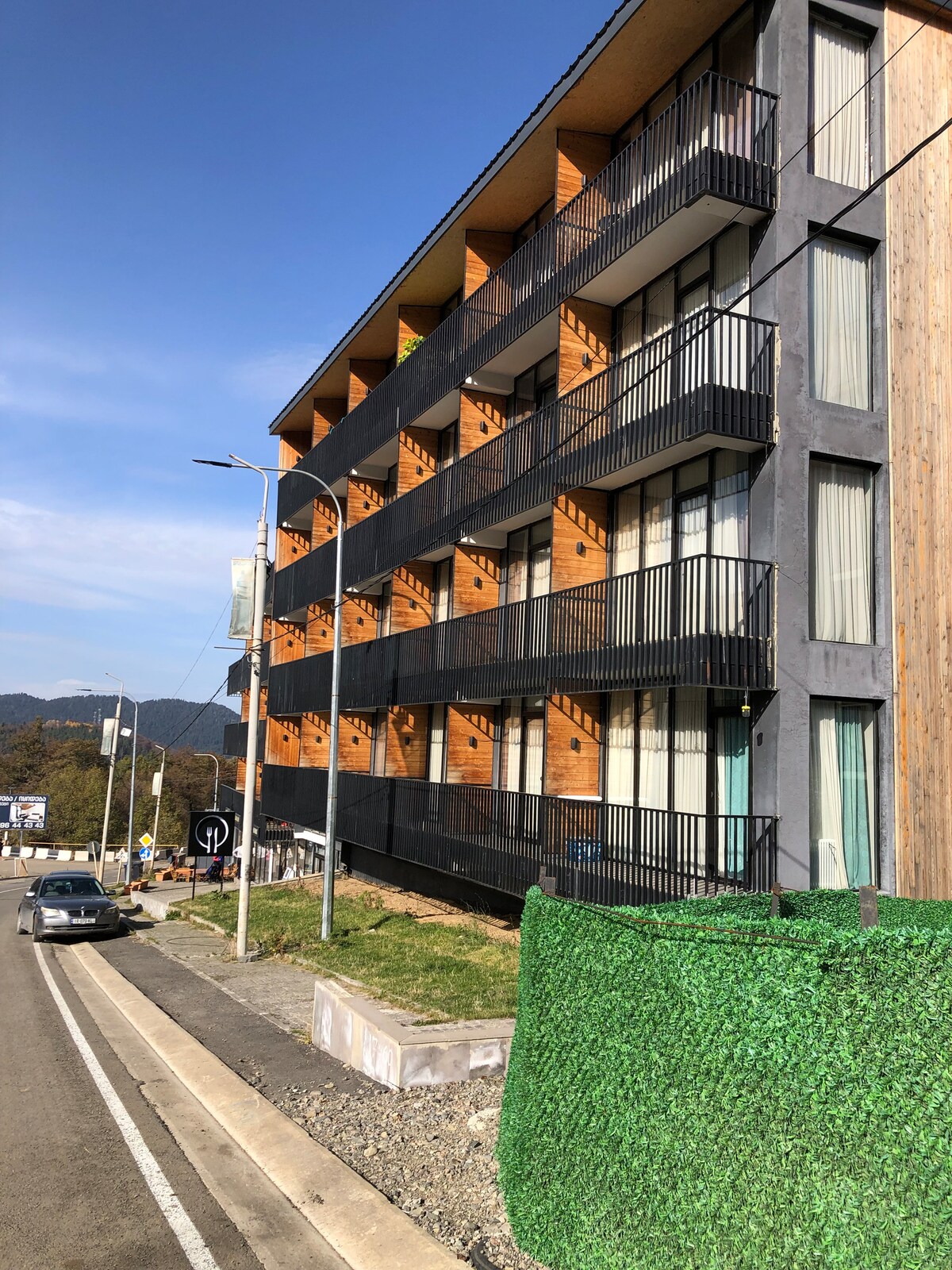 You will enjoy easy access to everything from centrally located 4 star hotel. Just around are nice parks, forest zone for fresh air and it’s 3 minutes walk from winter the best winter olympic 2023 skiing spot Didveli with cable cars. 40sq.m apartment is Studio style with a big balcony. Beds have linens, towels, there are all dishes needed and a toaster, kettle, washing machine. The flat is on the 4th floor with a perfect view. Pool is out of service temporarily.