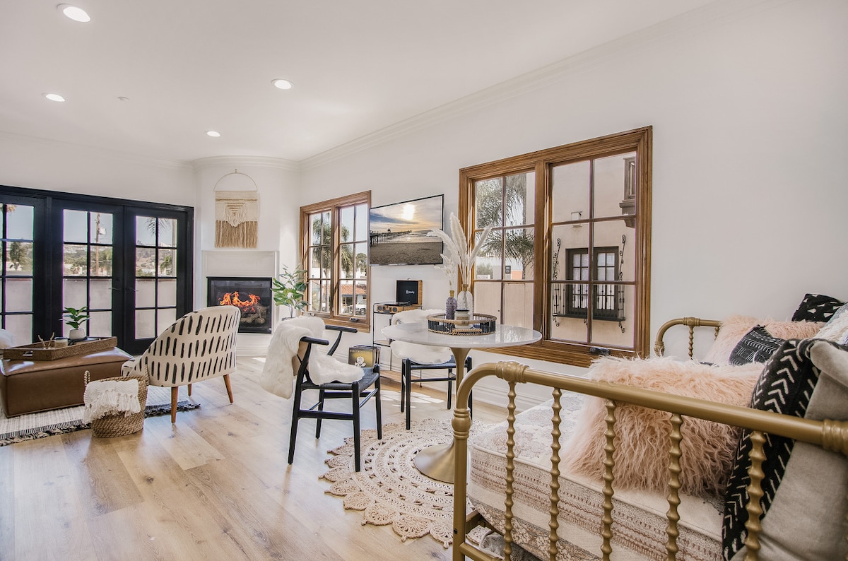 Los techos de rafter, los muebles de la granja costera y una paleta de colores de arena y blanqueada aportan las vibraciones tropicales al interior. Las familias pueden llevar juguetes a la playa para jugar junto a la orilla. Ubicado en el segundo piso e incluye un lugar de estacionamiento en el garaje. El bungalow está a una cuadra de la playa de Corona Del Mar, en las "calles de las flores", rodeado de casas multimillonarias. CDM Village, conocido por sus pintorescas tiendas, cafeterías, panaderías y restaurantes, está a la vuelta. Disneyland está a 20 millas de distancia.