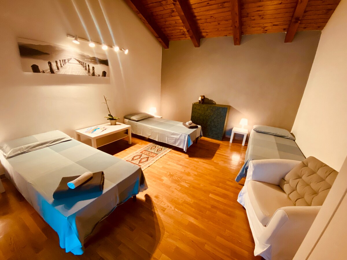 Nuestra casa se encuentra a pocos pasos del centro y, gracias al gran espacio compartido al aire libre, puedes relajarte rodeado de naturaleza. El alojamiento totalmente independiente, equipado con todos los servicios esenciales, tiene estacionamiento interior gratuito, la posibilidad de usar el gimnasio con lavandería y un área de relajación con mesas, sillas y una parrilla. Jardín con huerto compartido.