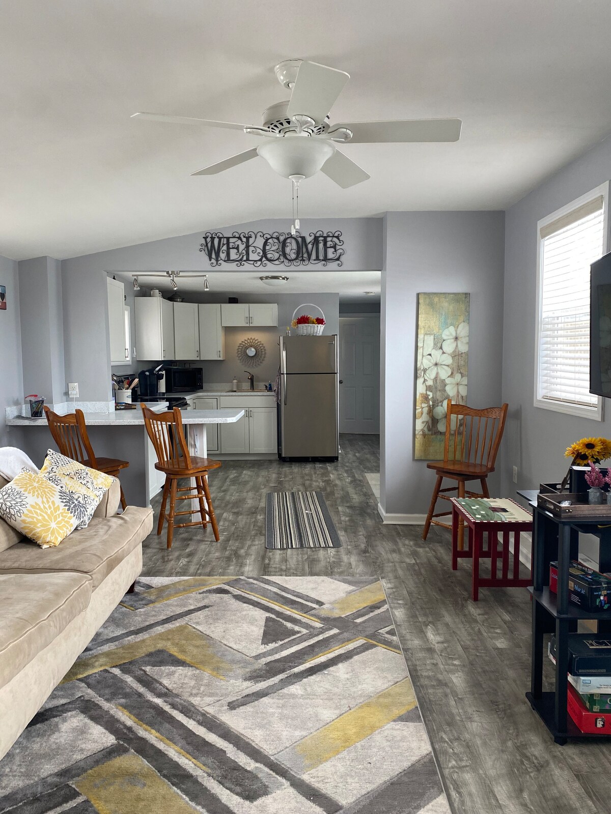 LOCATION PERFECT !!! Beautiful 2nd floor apartment in village center. Near Mohegan Manor, Lock 24, Papermill Island & boat slips. Reserved parking. Spacious flat with queen bed, living room, full bath, kitchenette & reliable internet. Linens & towels included. Kitchenette has all essentials - Keurig, kettle, coffee, tea, sugar, microwave, blender, tabletop air fryer/oven. NO cooktop or elevator. Updated in 2024 with all new furniture, mattress, and linens. Clean, well equipped, comfortable!