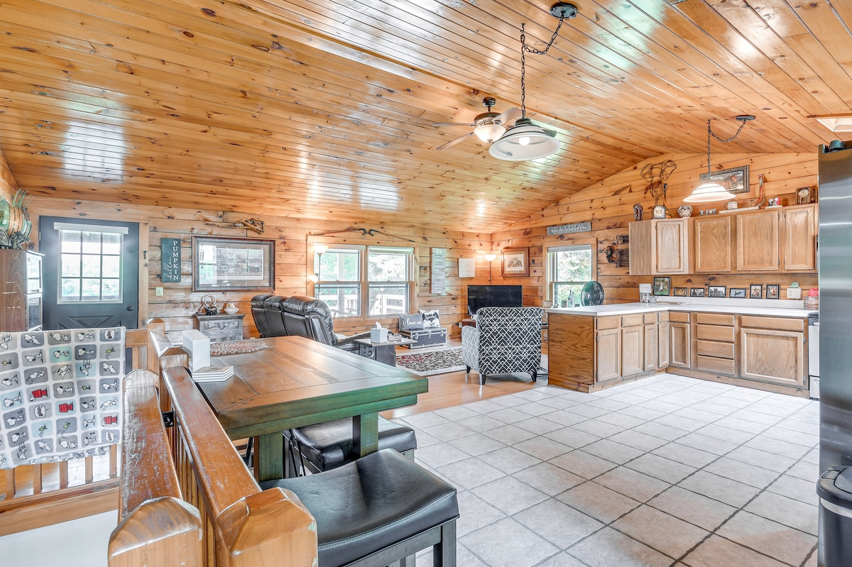 Suite independiente con cocina y entrada privada cerca del Parque Estatal Green Lakes en un hermoso entorno boscoso; suite de dormitorio en la planta superior con cama tamaño queen, colchón de aire doble (disponible previa petición) y acogedora bañera con patas con accesorio de ducha de mano; acceso a más de 100 acres de senderos boscosos, buenos para caminar y andar en bicicleta de montaña; a 1/2 milla del Four Seasons Golf & Ski Center