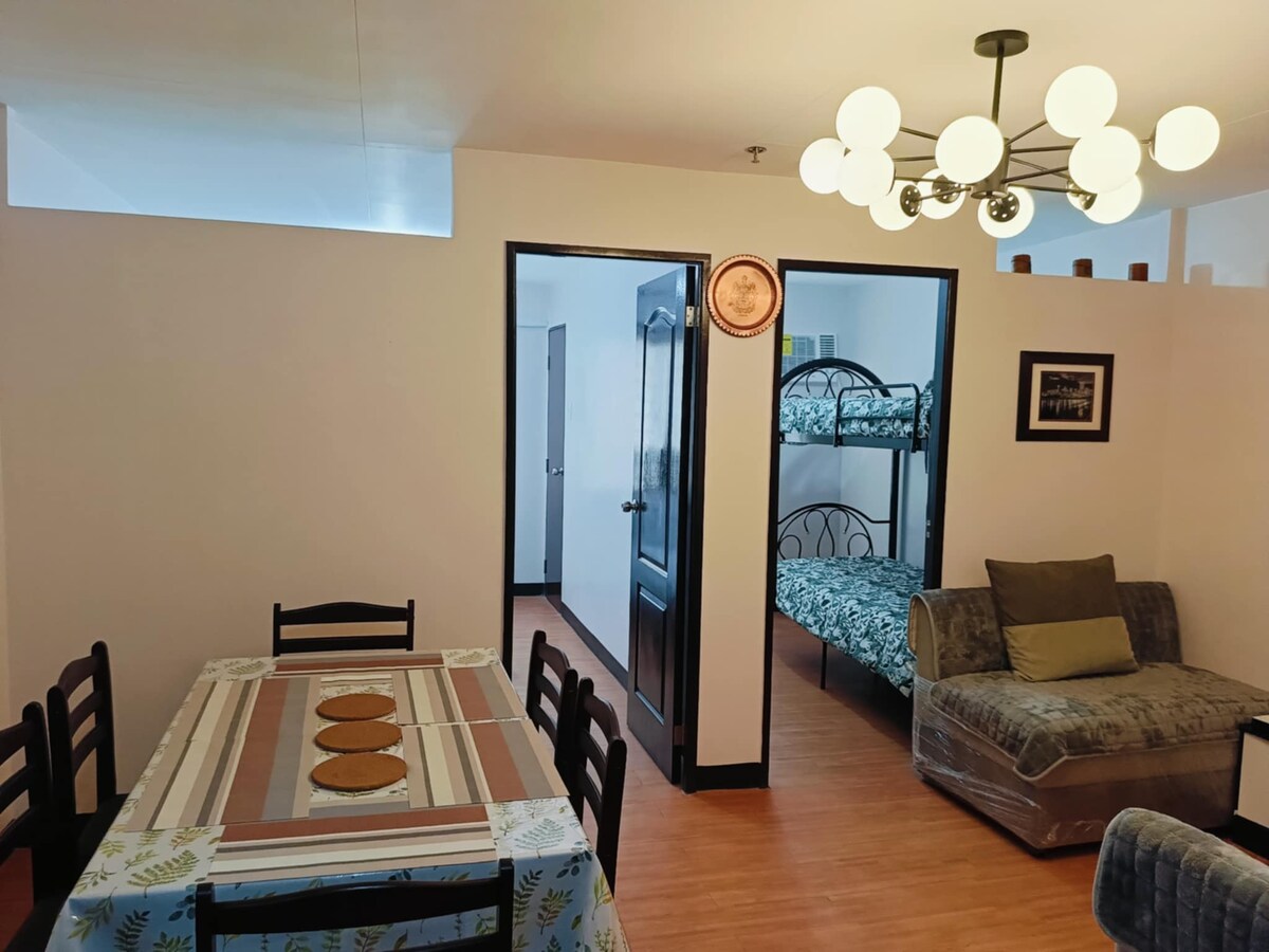 Bienvenido a The Meydan Suites en Azure North, un estudio de retiro inspirado en Japandi en San Fernando, Pampanga. A solo 1,5 horas de Manila, nuestro amplio estudio de 2 dormitorios cuenta con cocina completa, un baño y un balcón privado en el lado tranquilo de Azure. Por 200 PHP por huésped y turno, puedes disfrutar de comodidades de estilo resort, como la piscina de olas, la piscina de playa y las instalaciones de ocio. Es la escapada perfecta para parejas, familias o barkada.