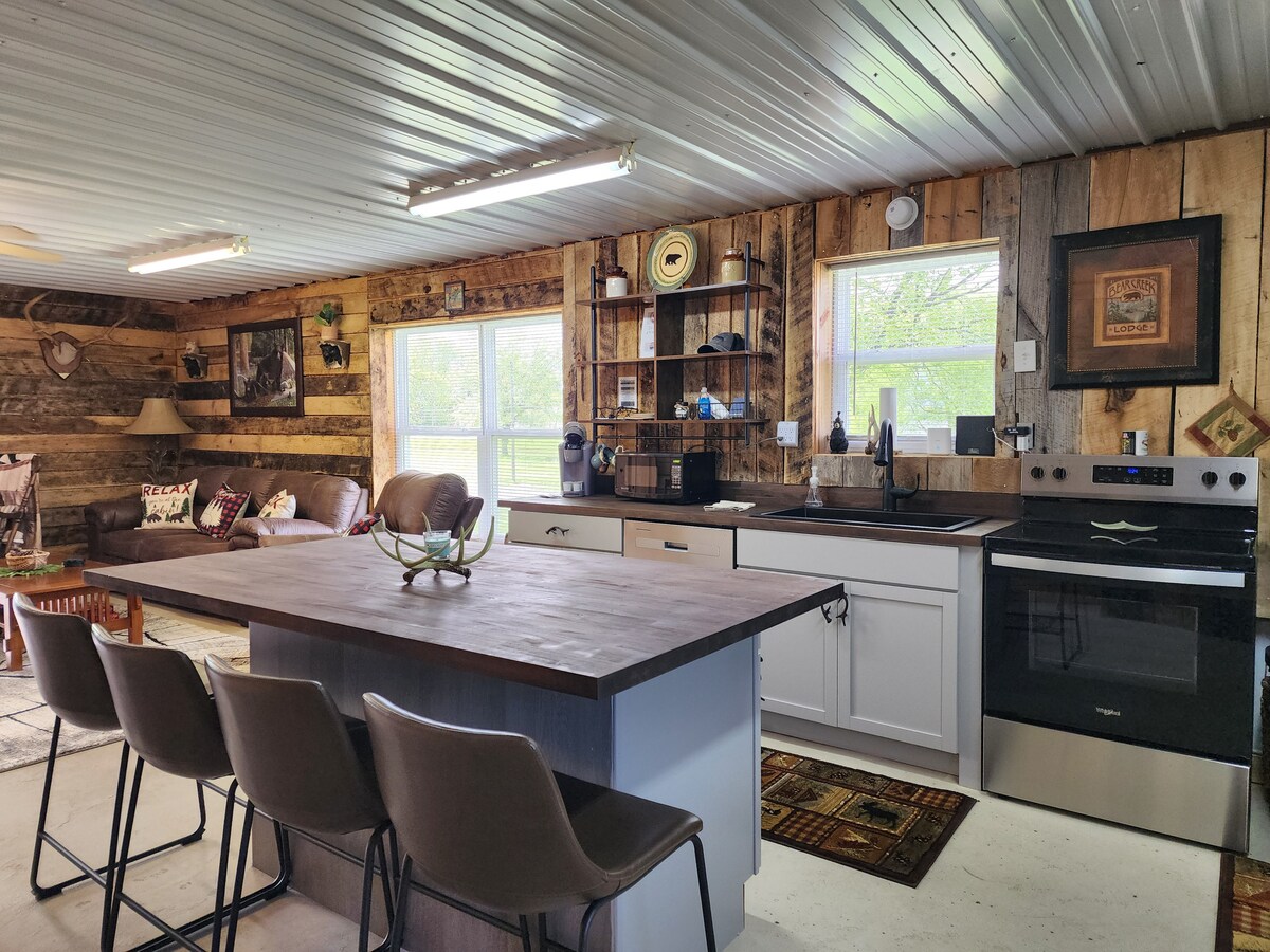 Ubicado en Joppa, Illinois, a las afueras de Metrópolis, The Shack es un acogedor refugio frente al río perfecto para relajarse o aventurarse. Disfruta de un espacio bien amueblado con wifi o relájate junto a la chimenea, viendo pasar las barcazas. La lancha pública está a pocos pasos, lo que facilita la pesca y la exploración. Harrah's Casino está a poca distancia en auto. Ya sea que estés de paso, cazando o relajándote, The Shack es tu escapada ideal. ¿Todo listo para tu escapada? ¡Disfruta del encanto junto al río en esta joya escondida!
