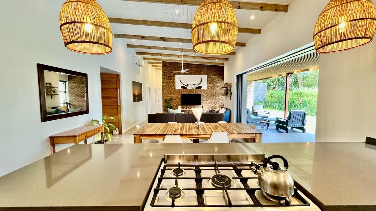 La casa moderna de nueva construcción en Simbithi Eco Estate en Ballito, ofrece una impresionante decoración interior y acabados de lujo. Cuenta con increíbles vistas sobre una presa y un bosque costero natural mientras está cerca de la ciudad y las playas. La casa contemporánea está a solo 80 metros del centro comunitario más popular de Simbithi con piscina de entrenamiento, pizzería y campo de golf. Disfruta de las vacaciones más increíbles en este impresionante refugio y aprovecha todos los servicios que ofrece el refugio seguro que Simbithi Eco Estate tiene para ofrecer.