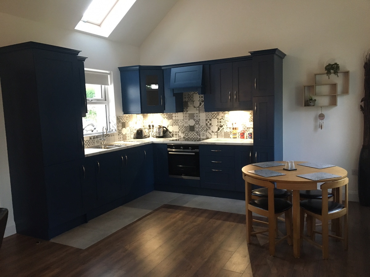 Hello from the rolling hills of Sligo! Our property is a spacious, modern, 1st floor studio appartment adjacent to our family home. It is fully furnished to a high standard with all mod cons. Bright & airy with a beautiful view over mature hardwood forest, it is nestled on a working sheep farm. It is a short 10 minute drive to Sligo Town, 3 minutes to Castledargan Hotel and Golf Course, and 5 minutes to Markree Castle with easy access to upland and forest walks, and world renowned beaches.
