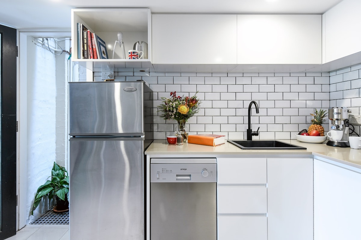 Bienvenido a nuestro moderno estudio en Birchgrove, un hermoso barrio costero de Sídney. El estudio se encuentra a pocos pasos del parque Mort Bay y de la terminal de ferris de Balmain, y cerca de las cafeterías del pueblo de Balmain. Nuestro estudio está diseñado pensando en tu comodidad, con una cama tamaño queen, cocina americana, televisor inteligente Sony 4K y wifi rápido. El baño tiene una ducha grande y mucho espacio de almacenamiento. Hay estacionamiento gratuito en la calle cerca. Reserva nuestro estudio para disfrutar de una estancia cómoda y práctica en Sídney.