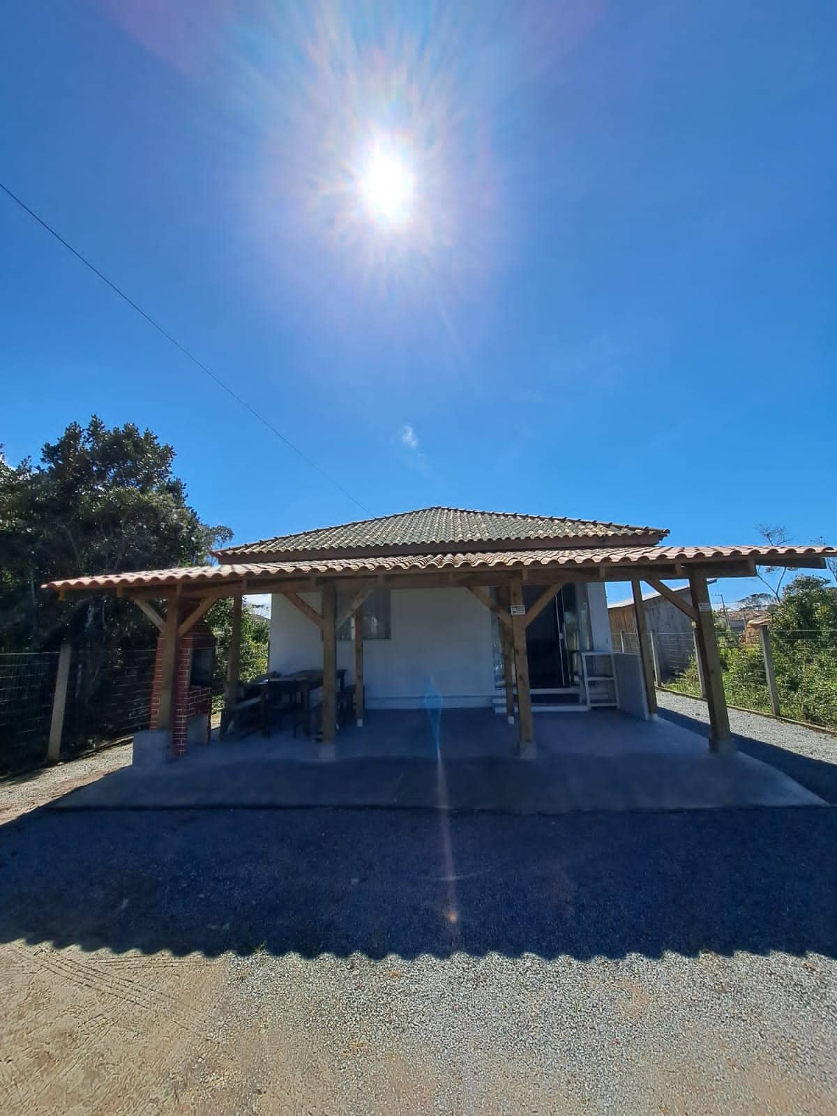 De propiedad familiar desde 1970, la casa fue reconstruida en el mismo lugar y con las mismas medidas que la antigua casa de madera, manteniendo la apariencia externa de la casa original. Varios detalles se refieren a la casa antigua. El piso y las divisiones internas provienen de la antigua casa de madera, así como el sofá, con revestimiento nuevo, la esquina alemana, los muebles del baño, el revestimiento de la pared en la sala de estar. Con la terraza en el área de entrada, tenemos espacio en el área al aire libre donde también se pueden colocar hamacas.