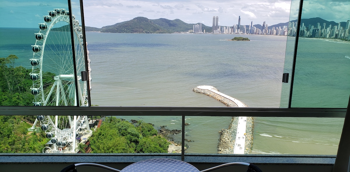 Este acolhedor Studio com vistas panorâmicas para o mar e roda gigante, localizado estrategicamente ao lado da praia, na barra norte da cidade, climatizado, é perfeito para uma estadia turística ou profissional. “O custo benefício é fantástico! Localização perfeita, ao lado da praia, sendo possível acessar a cidade sem tirar o carro da garagem e ainda poder usufruir da piscina, academia, parquinho infantil, quadra de esportes, sauna (seca), sala de jogos, e mirante!” Solange, sua anfitriã
